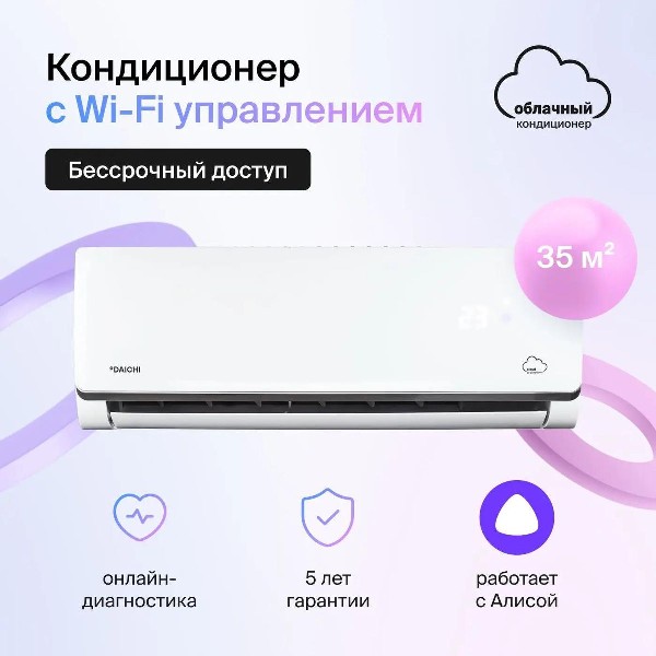 DAICHI A35AVQ2_UNL/A35FV2_UNL - это настенная инверторная сплит-система, предназначенная для создания комфортного микроклимата в помещениях площадью до 35 квадратных метров.